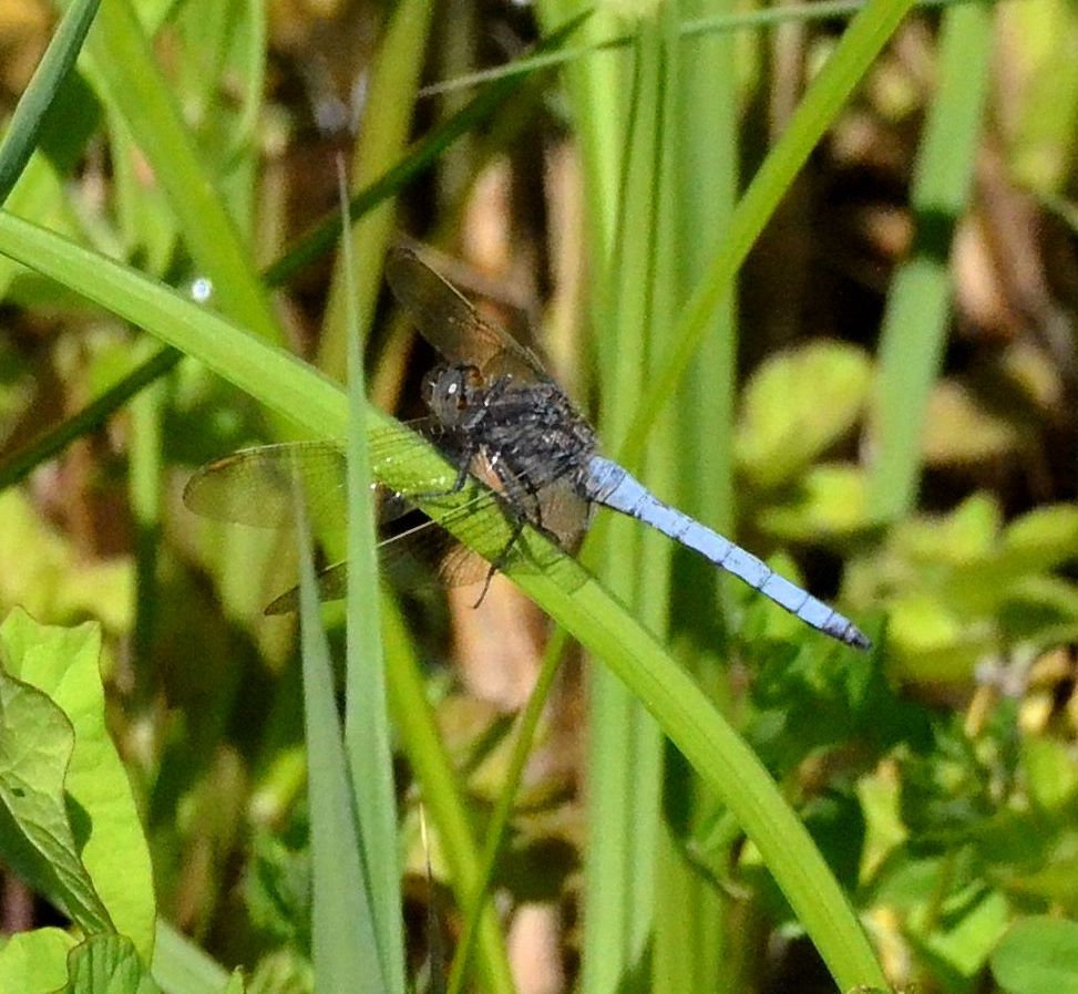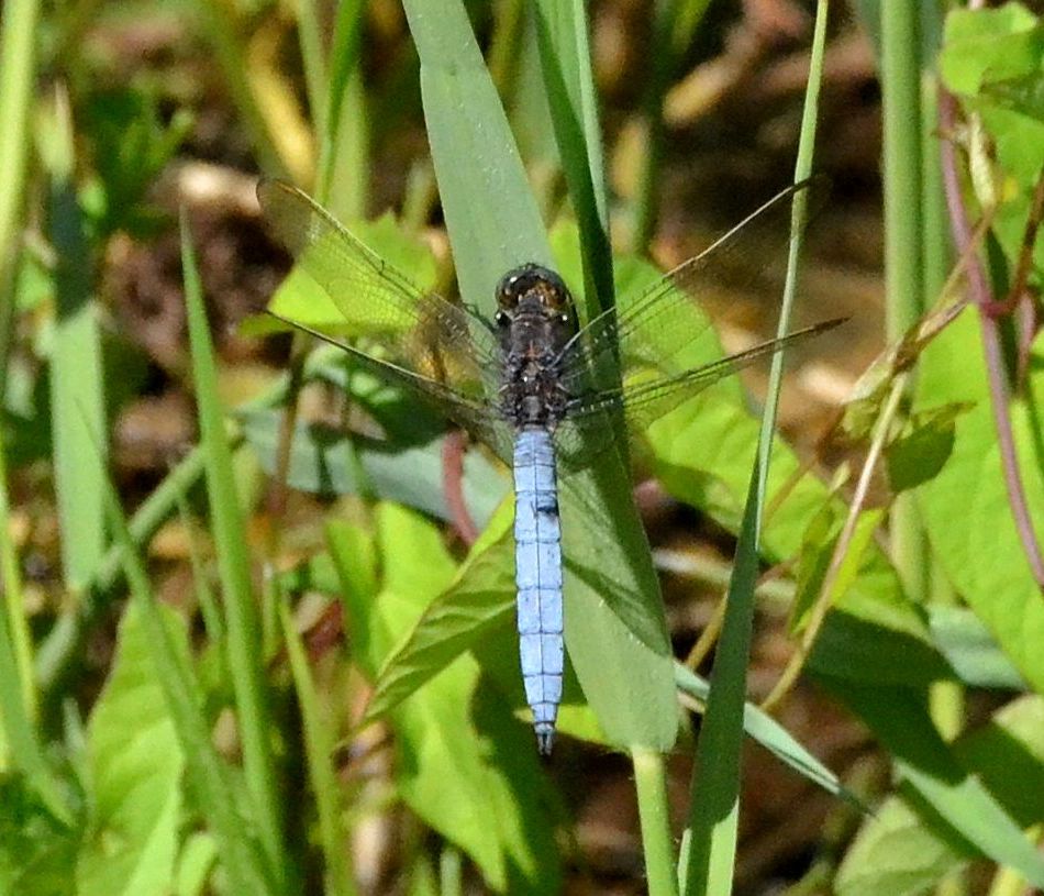 Before long up to 10 powder blue dragonflies became readily apparent mooching around the fen habitat. But I was perhaps a little early in the day to observe females that usually approach the male territories around midday. I had paid no attention to odonata other than Clubtails so far this season, and given recent distractions needed to re-acquaint myself with the diagnostics of both my day’s quest and the larger, heavier Black-tailed Skimmer to confirm the ID.