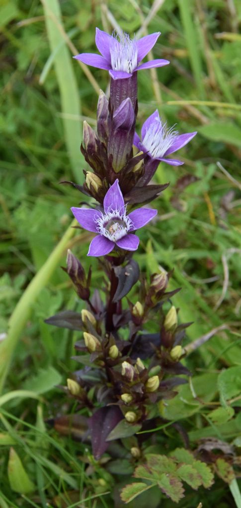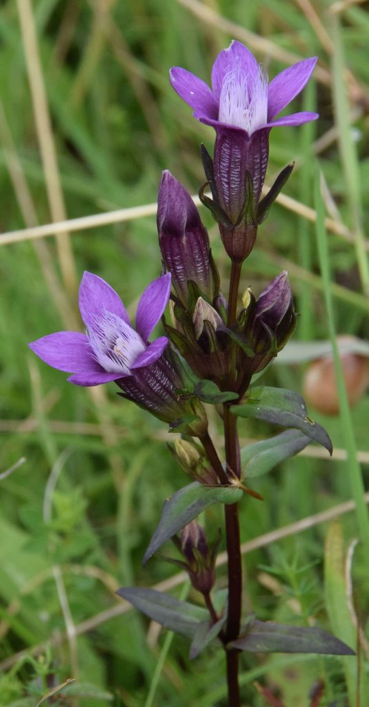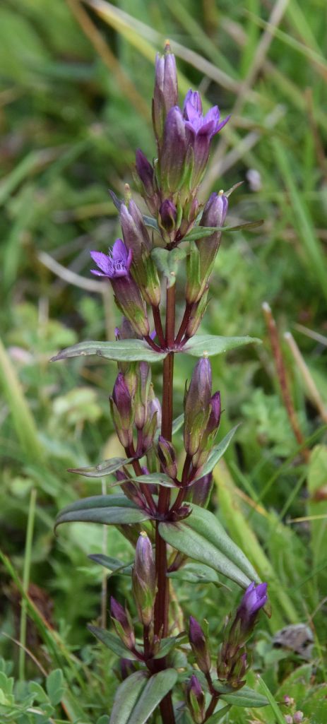 With Wayne’s guidance I have now gained a proper education on these iconic plants that bring many wild flower enthusiasts to Aston Rowant NNR. Rather than go into detailed dissection of flower components I will let the above two pictures (taken on 17th) illustrate the difference as they clearly do. Surveying the hillside back from the Frog Orchid end on 21st we found good numbers more Chiltern Gentian, the highly localised county flower of Bucks, the blooms of which stand out as being larger and wider when open. In bud the brown and cream tones of Chiltern is also quite distinctive, as in the last two images of the following sequence. This wet summer is clearly a good season for both species.
