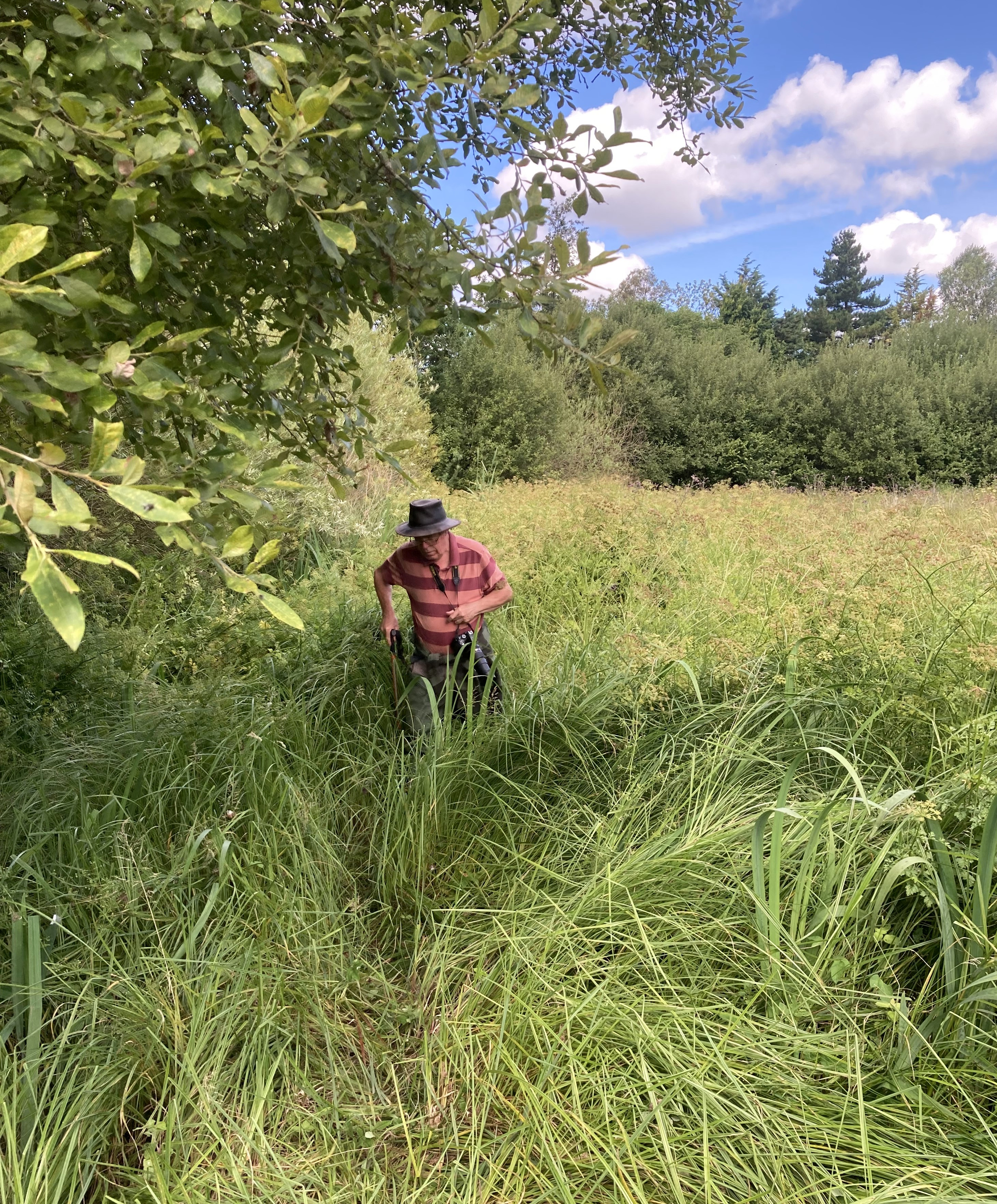 Whilst I was thus engaged more tandem pairs were posted on Facebook by an unknown observer, from Pinkhill Meadow, Farmoor. That needed to be checked out since there was a spoof dragonfly sighting from the reservoir in the recent past, of an orange teneral Scarce Chaser. But once the county recorder clarified and down-sized the record there was only one place for me to go on a partly sunny Friday morning (26th). Ahead of arriving on site I could not remember the last time I had visited that long-time stomping ground, but on this day there was scope for evolving through new Odonata. That process was to be no easier this second time around than two days earlier
